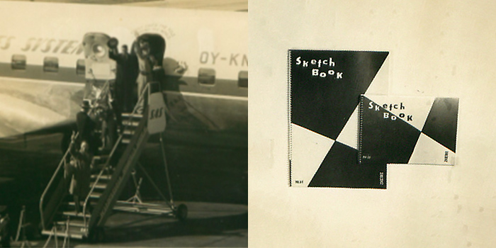 黄色と深緑色が交差する大胆な構成のなかに“Sketch Book”というちぎり絵風のロゴが入った柔らかく親しみを感じさせるデザインは、60年の時を経ても色あせることがありません。